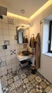 Das 2. Bad mit Badewanne und Dusche ist endlich fertig gestellt worden sowie die beiden Abstellkammern; eine für Bettwäsche etc. und die andere für die Gäste mit Reinigungsutensilien und viel Stauraum.
